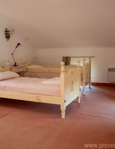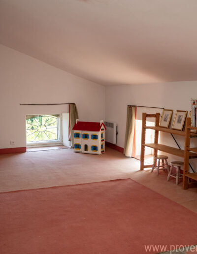 Au second niveau un beau volume séparé en deux parties, l’une servant de chambre d’enfant et l’autre disposant d’un point d’eau (évier et bidet) et de rangements.