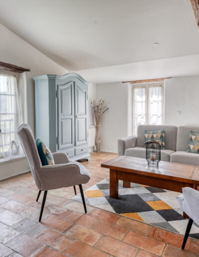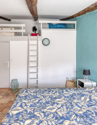 La première avec 1 lit en 140 cm avec placard, la seconde avec 1 lit en 140 cm, disposant d’une commode et la troisième avec un lit en 140 cm et en mezzanine un futon en 90 cm, elle dispose également d’une commode.
