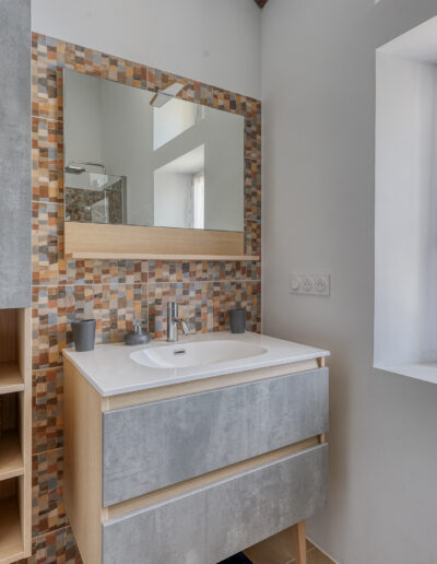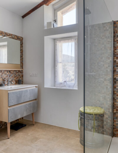 L’espace nuit, entièrement rénové se compose d’une salle d’eau avec grande douche italienne et WC, WC séparés, et 3 chambres.