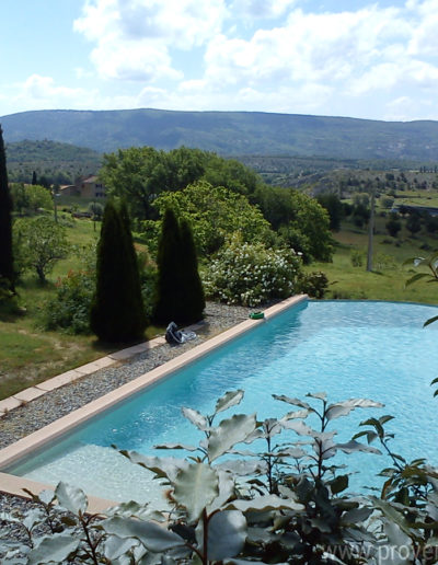 - Piscine à débordement sur le côté de la propriété 7×13 Prof de 10 cm (sur la plage d’environ 1m50) en progressant après les escaliers de 1 m à 2 m. L’usage de la piscine est réservé en priorité aux occupants des 2 logements loués conjointement en haute saison aux vacanciers.